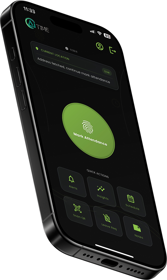 Simplify workforce management with AiTIME, the best workforce management software in UAE. Our AI-powered attendance app uses geofencing, attendance tracking, payroll management etc for fast, secure, and reliable check-ins—no paperwork needed.